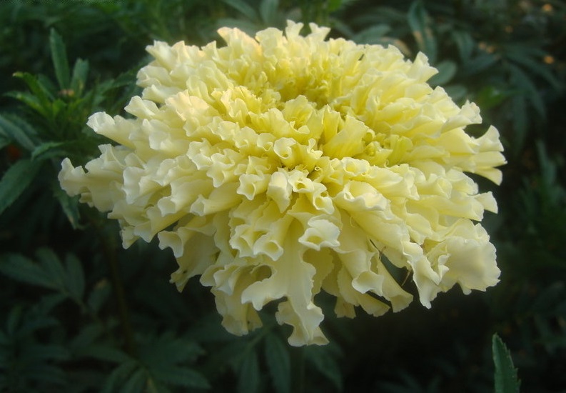 Семена Бархатцев Сноудрифт (Snoudrift) образуют растения с нестандартной для этой культуры окраской шаровидного густомахрового цветка. Скрученные в трубочку лепестки белые, в центре бутона имеют кремово-зеленоватый оттенок. Высота ветвистого кустика 50 сантиметров, ажурная листва сочного зеленого оттенка удачно оттеняет крупные цветки. Бутоны на нем образуются непрерывно, с июня до наступления холодов. Бархатцы неприхотливы и декоративны в течение всего сезона. Они хорошо растут не только в цветнике, но и в подвесных кашпо, вазонах. Срезанные цветы долго не вянут, наполняя комнату характерным ароматом.