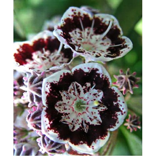 • Окраска цветка : белые с т-коричневым, почти черным кольцом и с белой каймой