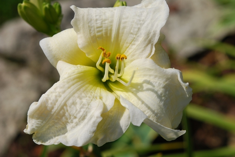 - обильное и продолжительное цветение. Распустившиеся бутоны имеют белоснежные лепестки с немного гофрированным краем и атласным блеском, горлышко при этом нежно-зеленного оттенка. Лилейник Джентл Шеферд прост в уходе, что нисколько не уменьшает красоты этого растения. Взрослый куст имеет обильную листву и множество цветоносов, что создает ароматное цветочное облако.