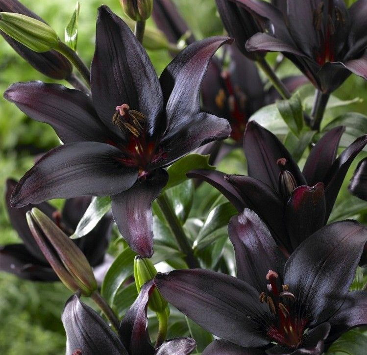 Лилия азиатская блэк чарм - это великолепное растение, которое поразит вас своей изысканной красотой. Ее темно-бордовые цветки, приближающиеся к черному оттенку, создадут загадочную и утонченную атмосферу в вашем саду. Высота этого растения может достигать 80-100 см, что делает его заметным акцентом в ландшафте. Листья лилии имеют интересную форму, что добавляет ей изюминку.