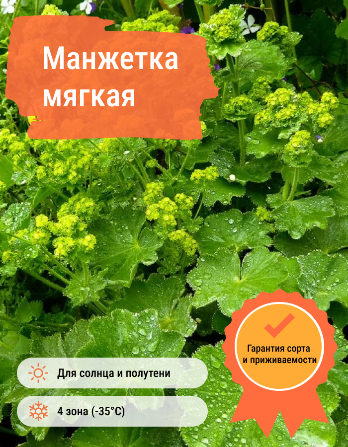 Рассада Манжетки мягкой – это многолетнее травянистое растение, отличающееся от одноименного дикого растения своими крупными цветками и листьями, составляющими отдельный декоративный куст. Зелено-желтые цветки выглядят невзрачно поодиночке, но целиковое соцветие смотрится очень красиво. Декоративность растения сохраняется в течение всего лета. При посадке рассады Манжетку рекомендуется помещать отдельными кустами на расстоянии минимум 30 см. Данное требование связано с большой скоростью разрастания и сложностью последующей пересадки. Этот сорт податливый и совсем неприхотлив в уходе. Может активно развиваться на солнце или на полузатененном участке.