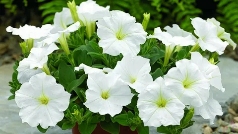 Эта петуния радует своими белоснежными цветками с начала лета до конца июля. Она предпочитает солнечные места и плодородные почвы. Для обильного цветения растение требует регулярного полива и удобрений. Помните, что петуния не переносит затопленных корней, поэтому следите за частотой полива.