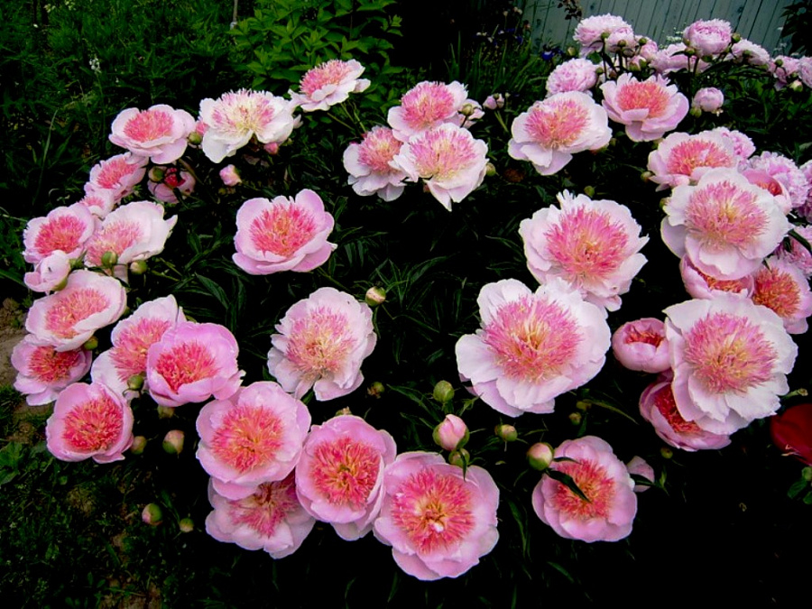 Пион молочноцветковый Ду Телл получил медаль от американского сообщества, и его семена широко используются в селекции. Порадовать своим эффектным цветением может уже в конце мая. Прекрасно смотрится в летних букетах.