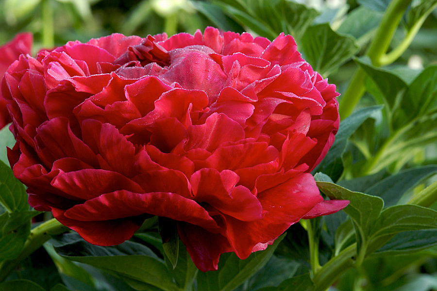 Рассада пиона молочноцветкового Генри Бокстос (Henry Bockstoce) хорошо приживается и в будущем порадует садовода мощными растениями с великолепными красными цветами. Цветение начинается в мае. Взрослое растение похоже на куст и достигает 1 м в высоту. Стебли прочные, усеянные темно-зелеными тонкими листьями. Цветки крупные, махровые, ярко-красные, необычайно эффектны в срезке. Могут образовывать семена. Особенности пиона Генри Бокстоса: